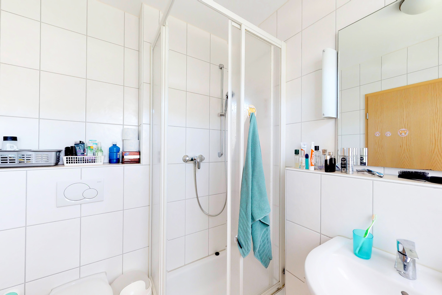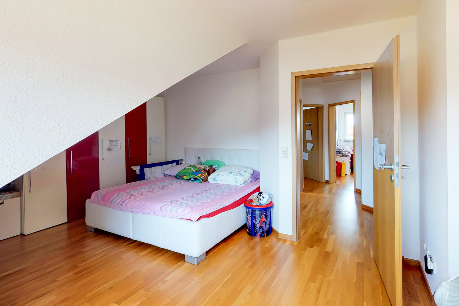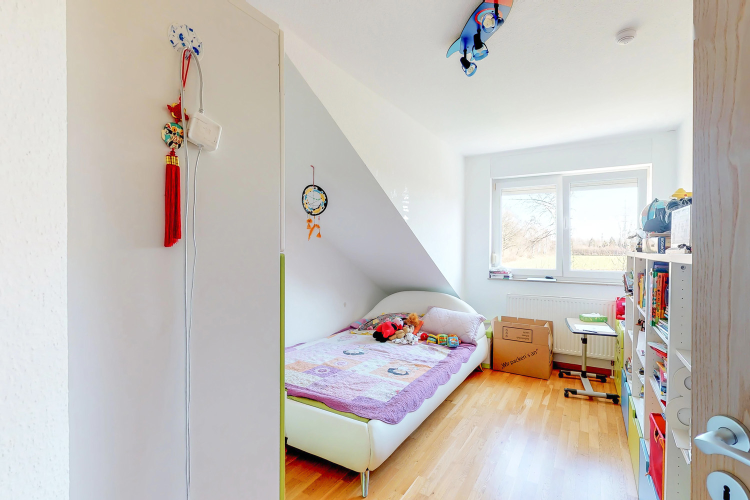Im Obergeschoss befinden sich neben Elternschlafzimmer und zwei Kinderzimmern auch ein großes Elternbad mit Wanne, Dusche und Fenster sowie ein Kinderbad mit Dusche. Morgendlicher Stau vor der Badezimmertüre? Wird es hier somit nicht geben.
