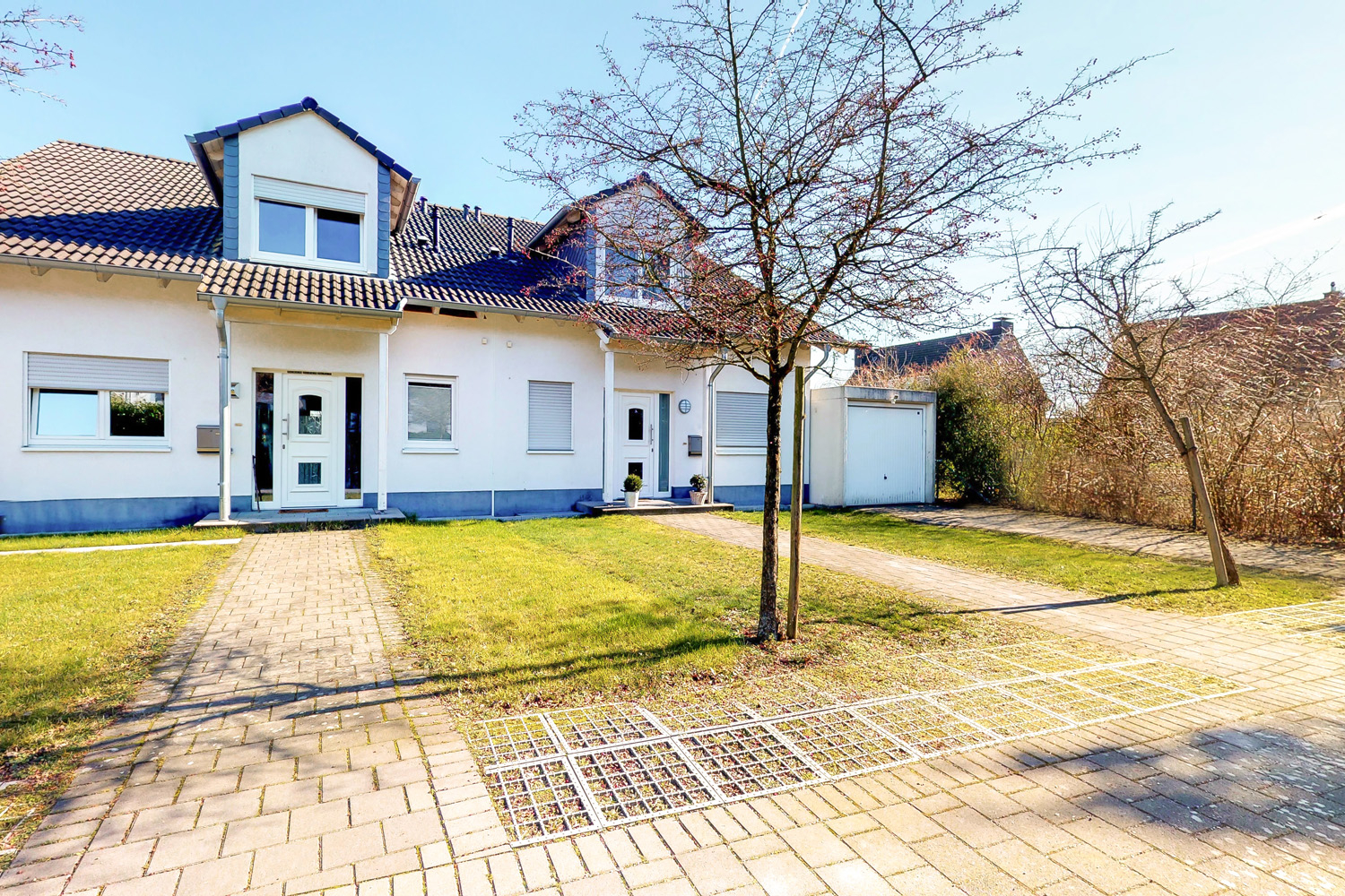 Familien willkommen! In dieser Doppelhaushälfte können Sie ruhig am Ende eines kleinen Privatweges wohnen. Parken Sie das Auto bequem in der Garage und schon geht es hinein in Ihr neues Zuhause.