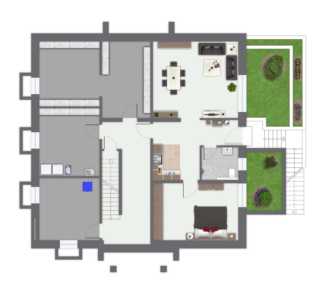 - Einliegerwohnung im Gartengeschoss mit separatem Eingang