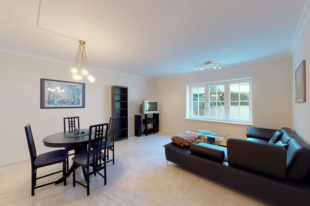 Im Untergeschoss ist ein zusätzliches Raumangebot versteckt. Neben den üblichen Kellerräumen finden Sie hier auch ein helles ca. 60 m² großes Apartment mit Fensterfront zum eigenen bepflanzten Eingangsbereich. Sie können sich überlegen, wie Sie dieses zusätzliche Platzangebot nutzen möchten. Bisher wurde das Apartment möbliert vermietet. Ein Au-pair würde sich hier sicher genauso wohlfühlen wie ein Kind im Teenageralter. Ein geräumiges Homeoffice oder ein Wellnessbereich wären ebenfalls denkbar. Die Einliegerwohnung verfügt auch über einen Zugang zum Haupttreppenhaus und ist natürlich mit einem eigenen Alarmsystem gesichert.