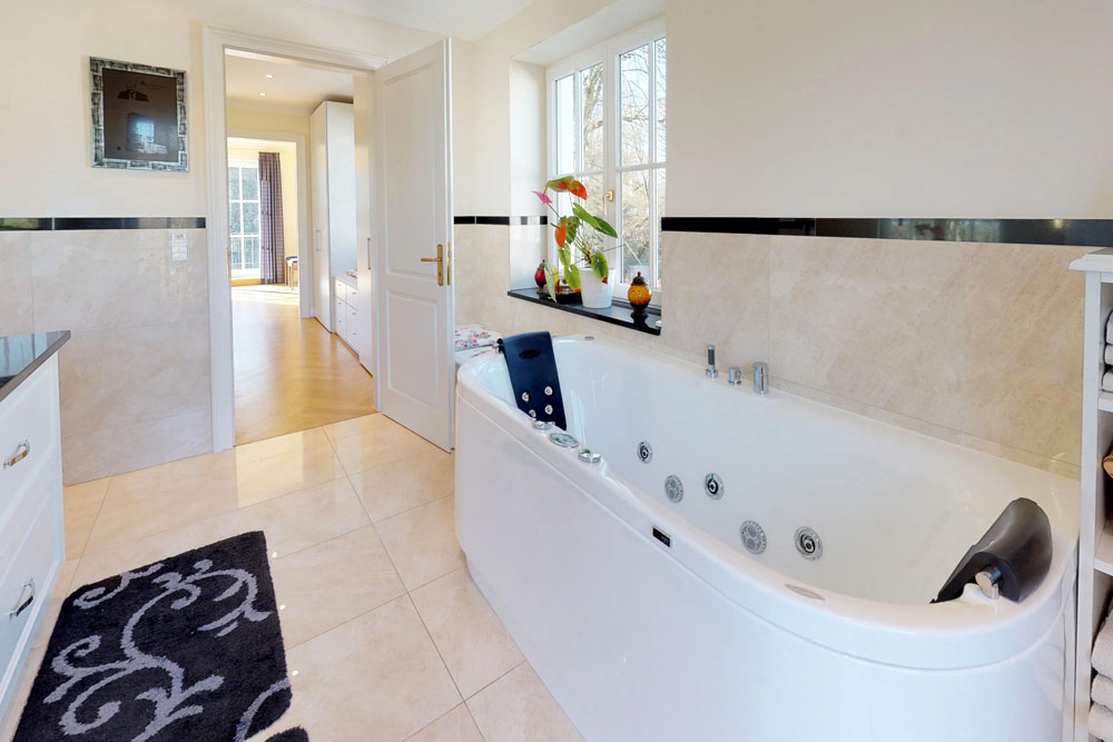 - Mastersuite mit Ankleide und großem Tageslichtbad (Whirlpoolwanne, Regendusche…)