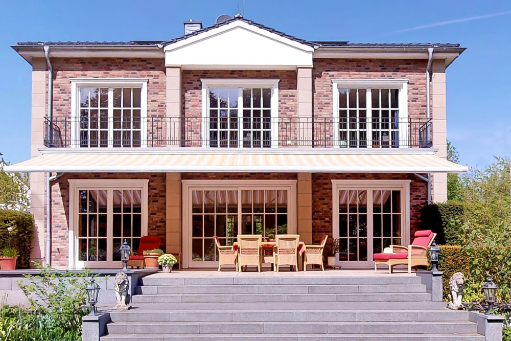 - elektrische Markise über die gesamte Gartenseite der Landhausvilla