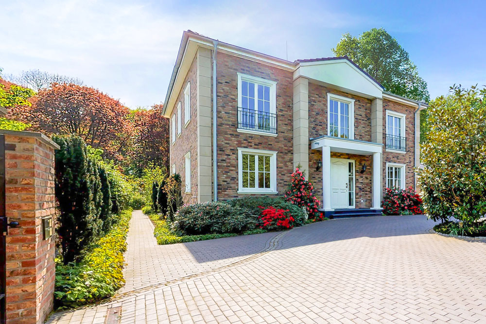 - Vollverklinkerte Villa im englischen Landhausstil mit großen Sprossenfenstern