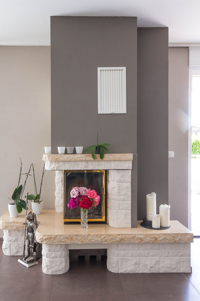 - offener Heizkamin aus Marmor mit Schutzfenster (Kaminkassette) von Hark
