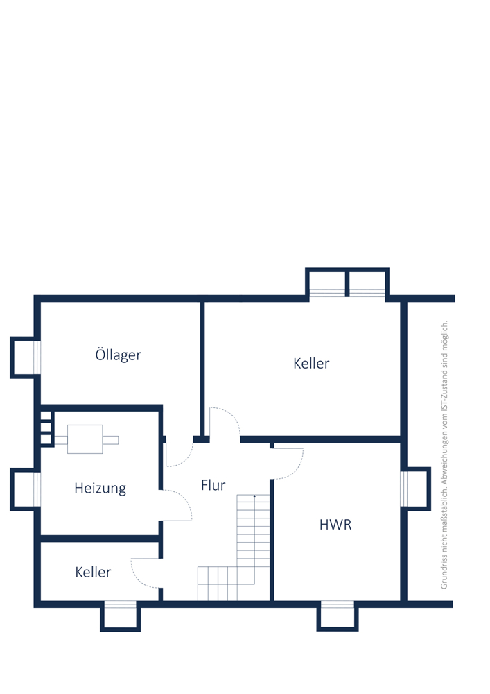 Ihre Begeisterung wird sich im Kellerbereich mit den ca. 2,50 m hohen Decken fortsetzen. Hier finden Sie weiteren Platz - die großzügigen Räume bieten auch hier diverse Optionen, z.B. als Büro, Hobbyraum, Arbeitskeller oder Sport- und Wellnessbereich.