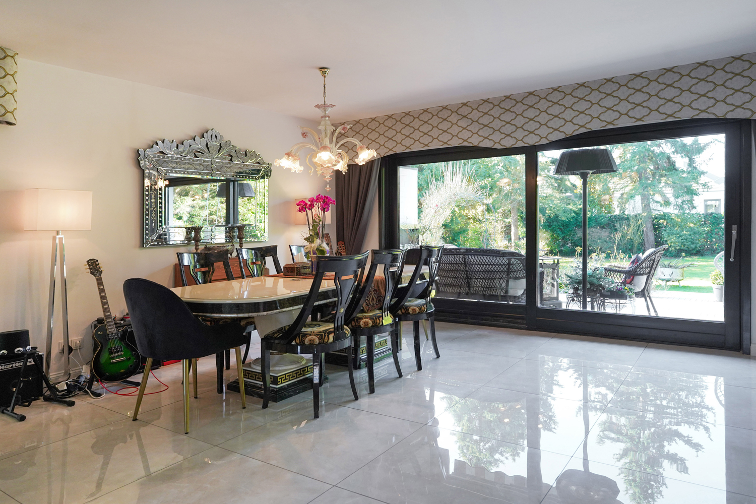 Das Wohnzimmer bietet auf ca. 45 m² sowohl für Ihre Familie als auch für viele Gäste genügend Fläche. Öffnen Sie die Terrassentür und genießen Sie die warme Sommerbrise und den herrlichen Anblick des Gartens und der schönen Rosen. Freuen Sie sich auf unzählige schöne Stunden, die Ihre Kinder hier beim Spielen und Toben verbringen werden.