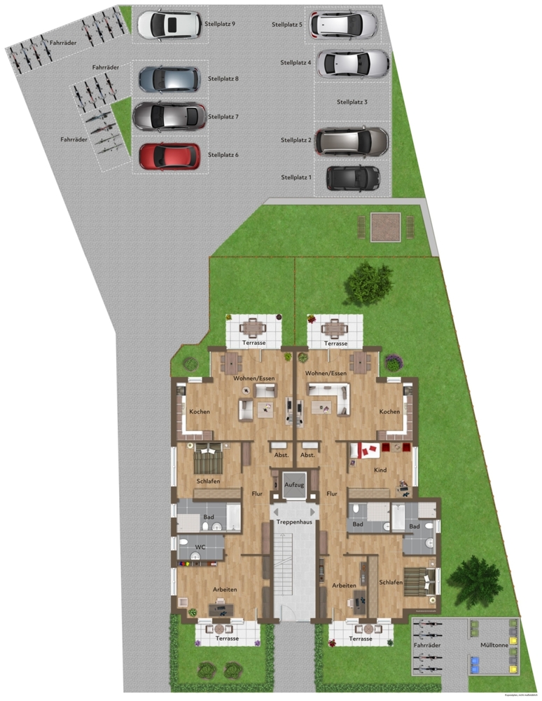 - 9 Außenstellplätze und 24 Fahrrad-Stellplätze