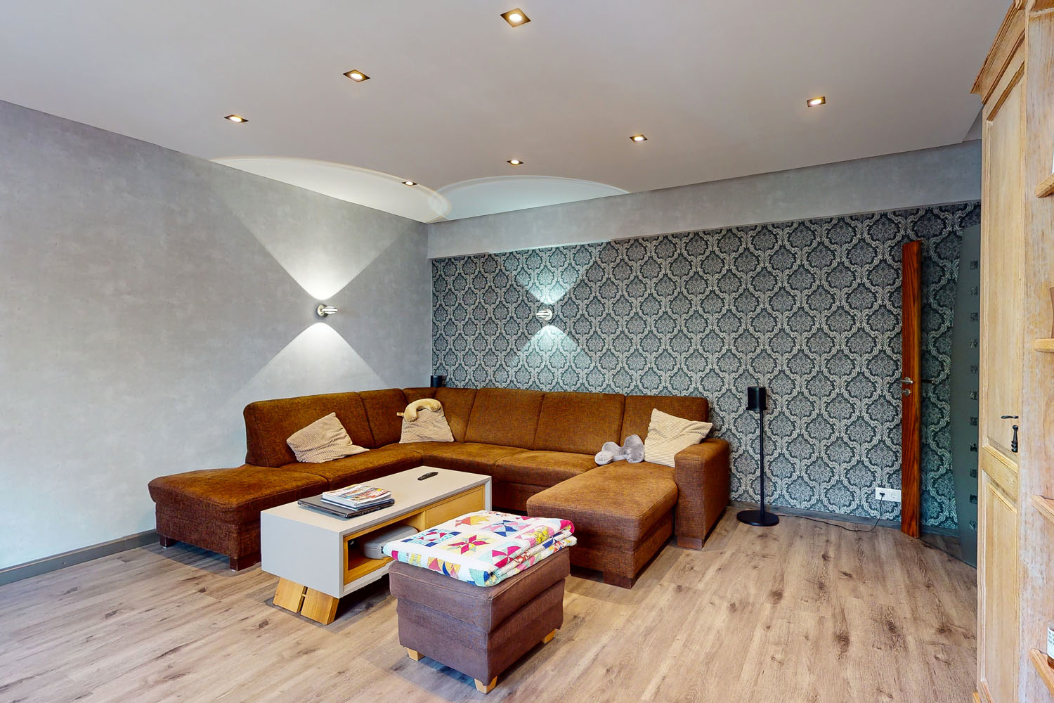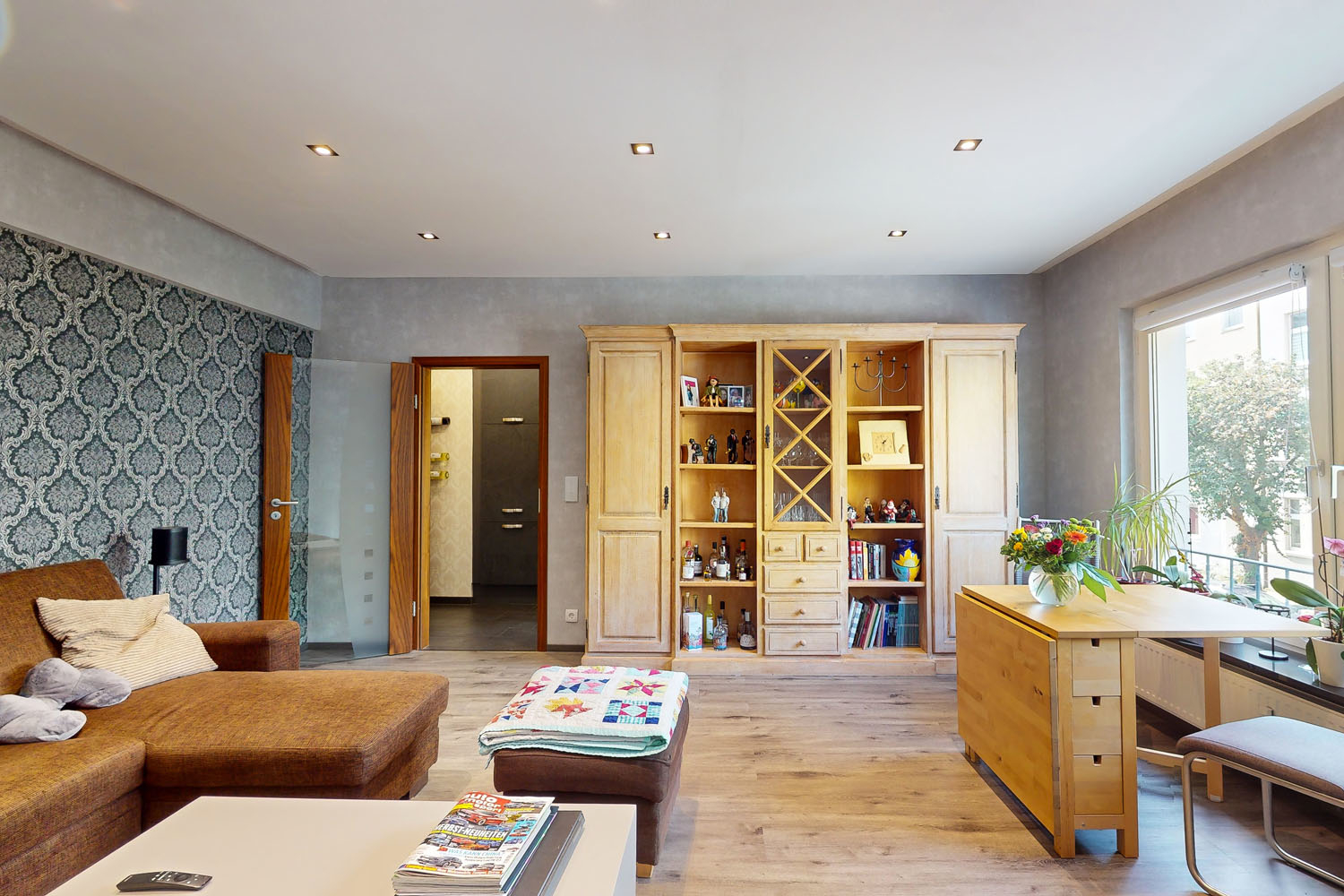 Das helle und großzügig geschnittene Wohnzimmer, bietet genügend Platz für Ihre Couch, Ihr TV-Board, Ihren Vitrinenschrank sowie einen großen Esstisch. Hier können Sie wunderbar entspannen und den Tag nach der Arbeit ausklingen lassen.