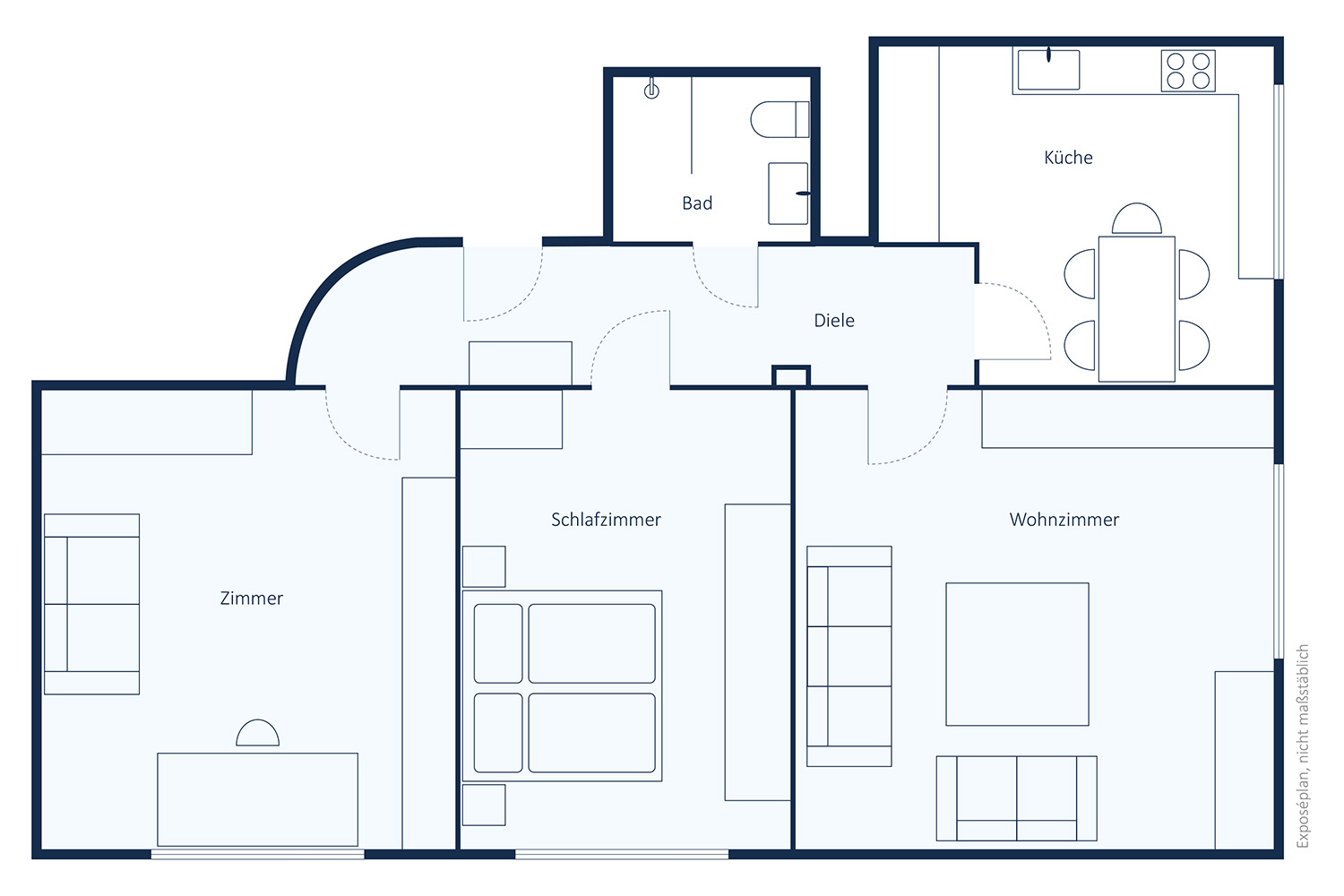 Schon beim Betreten des Flurs wird die durchdachte Raumaufteilung der Wohnung deutlich spürbar. Der weitläufige Eingangsbereich bietet Ihnen reichlich Platz für Garderobe und Schuhschrank.