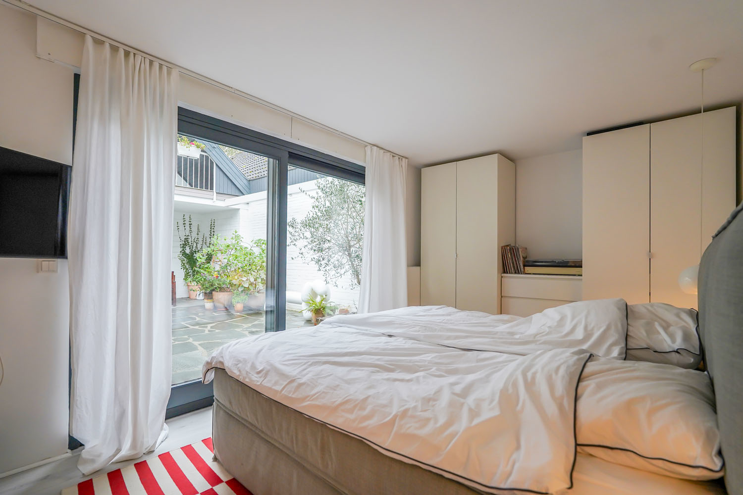 Das Schlafzimmer verfügt über einen direkten Zugang zum Innenhof und einer 13 m² großen Ankleide sowie einem modernen Bad en Suite mit ebenerdiger Dusche.