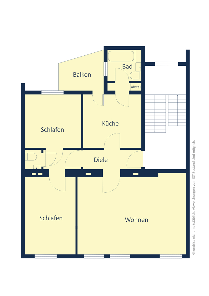 2. Obergeschoss: 3-Zimmerwohnung mit Balkon