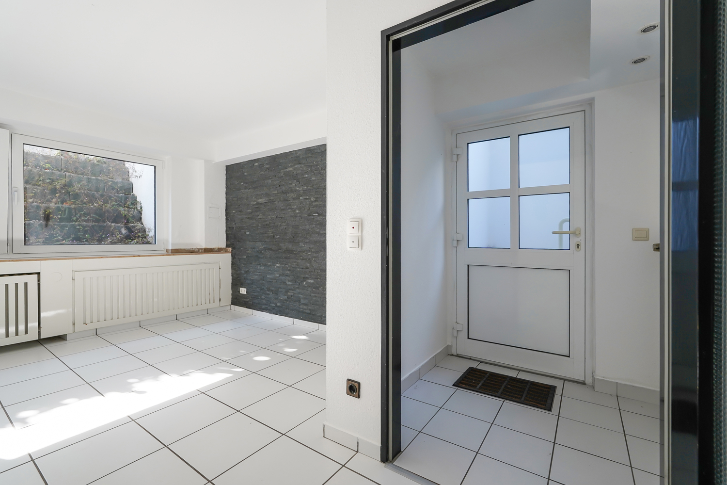 Ihr neues Refugium begrüßt Sie mit einer hellen Eingangsfront. Von der Straße lässt sich kaum erahnen, welch helles und großzügig geschnittenes Haus sich hinter den Mauern befindet.