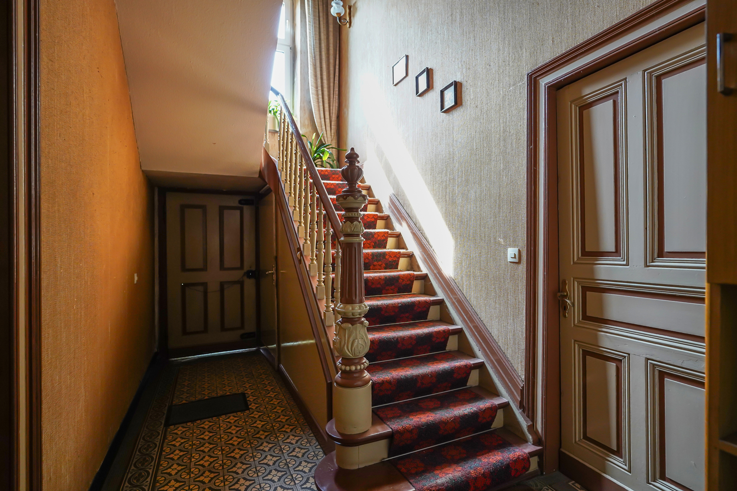 - historische Fliesen und Stuckdecken im Eingangsbereich sowie originale Holztreppe