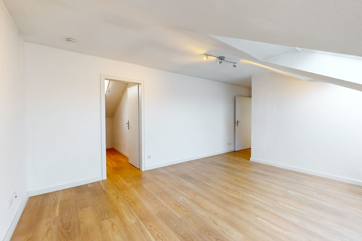 Sie öffnen das Dachfenster, schauen hinaus und Ihr Blick fällt auf das gegenüberliegende Rheinufer, während die Sonnenstrahlen auf der Wasseroberfläche funkeln. Entlang der Flusskurve schiebt sich gerade ein Schiff mühevoll gegen die Strömung hinauf. Mit wenigen Schritten erreichen Sie das Rheinufer, an dem Sie ausgiebige Spaziergänge oder Fahrradtouren entlang des Ufers genießen können.