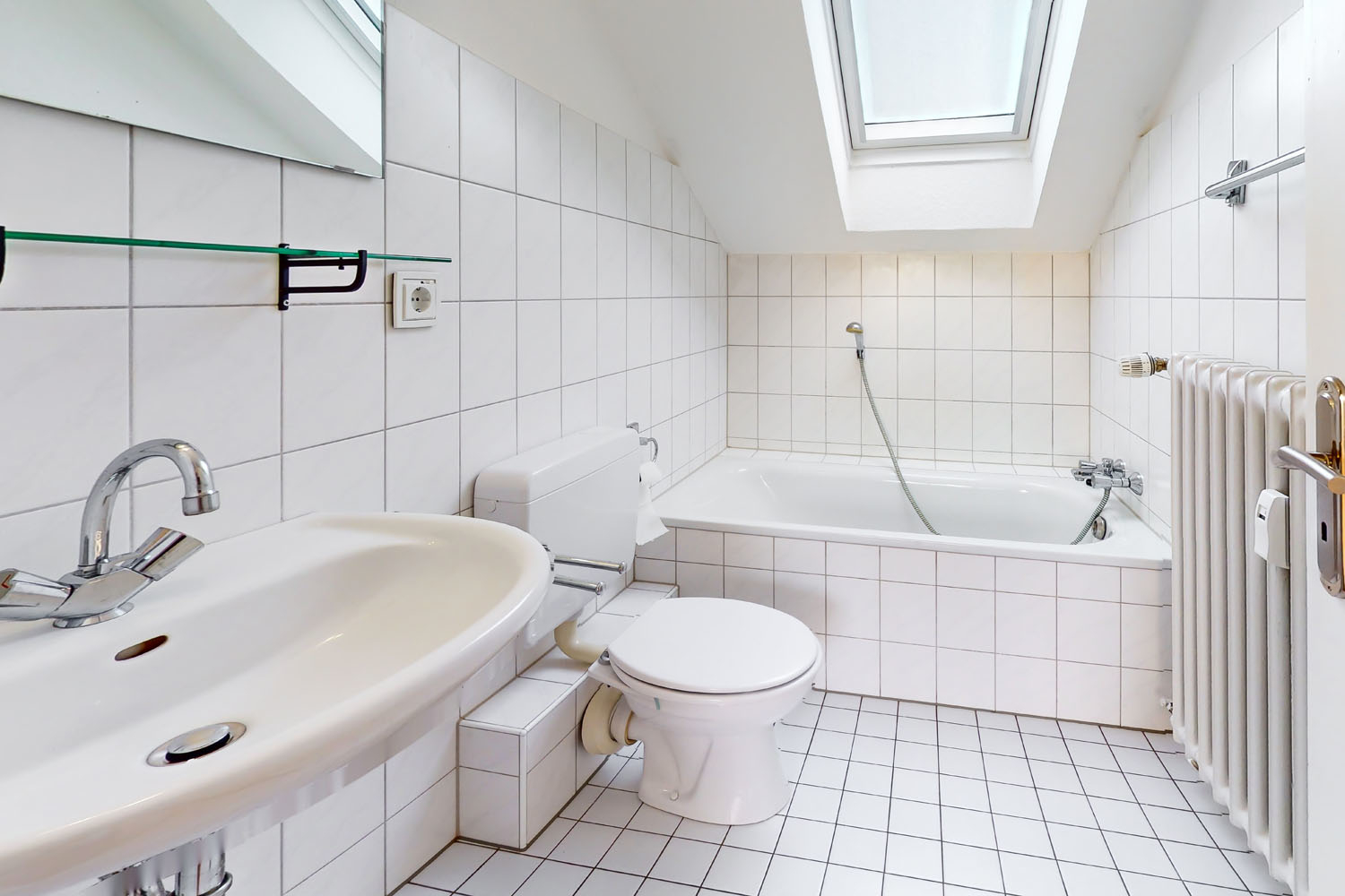 - Bad mit Fenster, Badewanne, WC und Waschbecken
