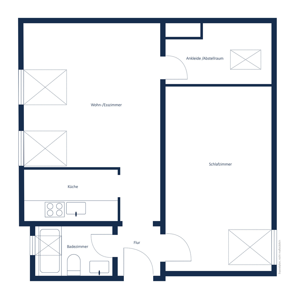 Hier ist genügend Stellfläche für einen Esstisch, an dem alle Ihre Gäste Platz finden werden.