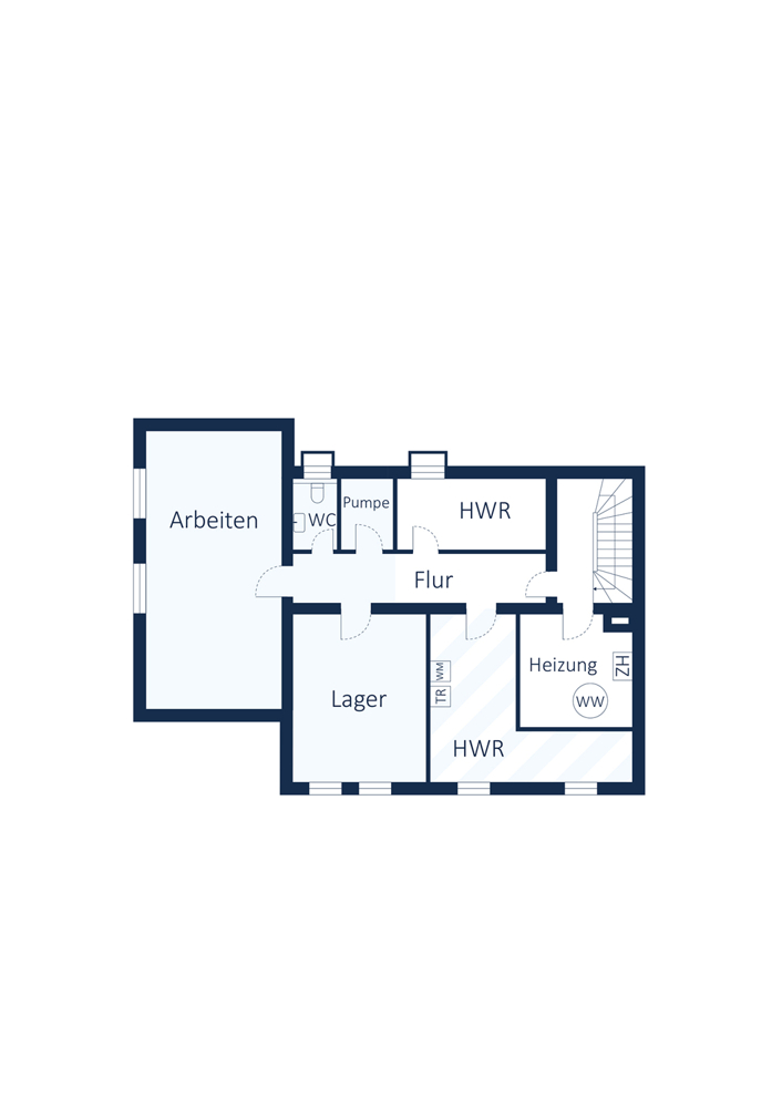 Zur Wohnfläche gehören zudem etwa 35 m² hochwertig ausgebaute Nutzfläche im Kellergeschoss. Mit Parkettboden, Fußbodenheizung, Fenstern und elektrischen Rollläden eignet sich dieser Bereich ideal beispielsweise für ein Homeoffice mit eigenem WC.
