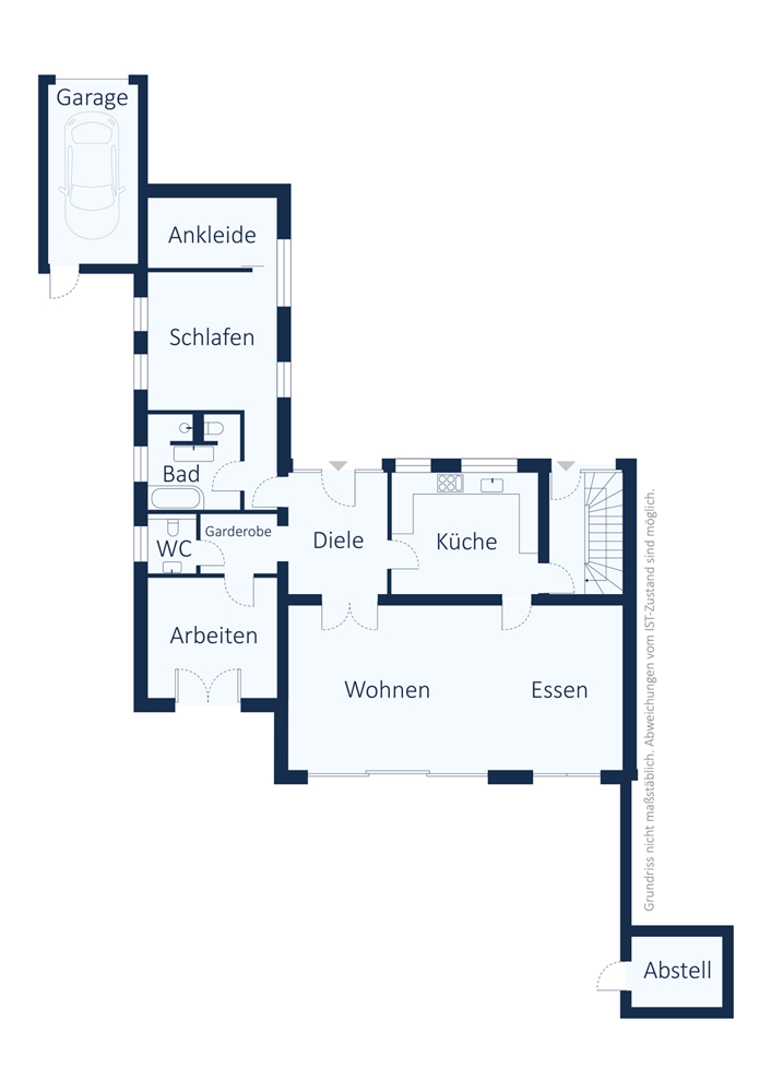 - Möglichkeit für eine Abluft-Dunstabzugshaube in der Küche