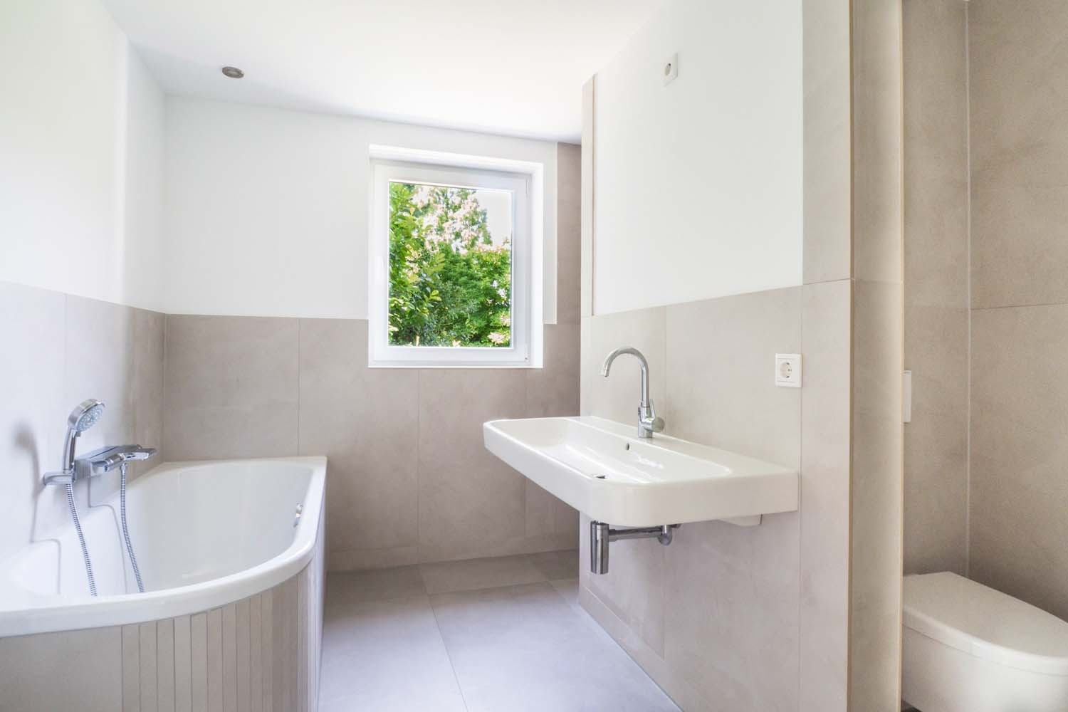 - Bad mit Badewanne, bodentiefer Dusche und großem Waschbecken