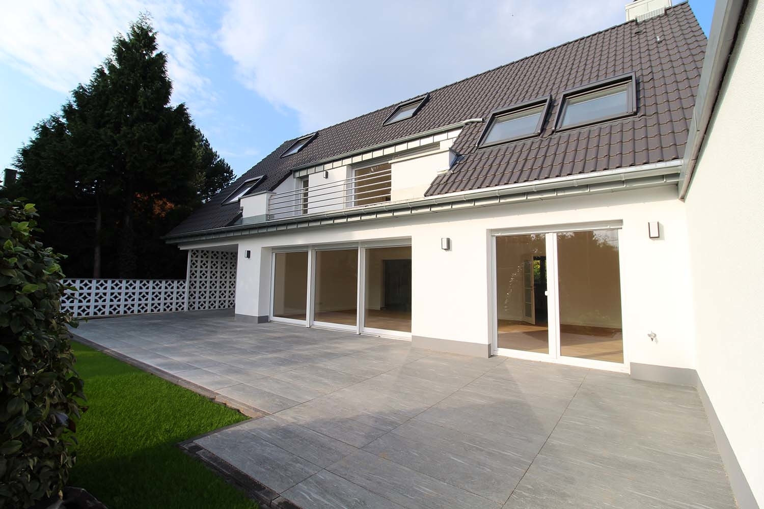 - Die Terrasse wurde mit Steinzeugfliesen erneuert und vergrößert. Auf den Fotos im Exposé ist teilweise die alte Terrasse zu sehen
