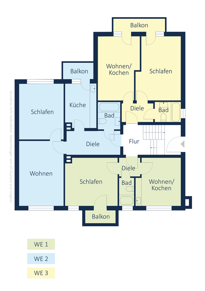 - pro Etage 3 Wohneinheiten