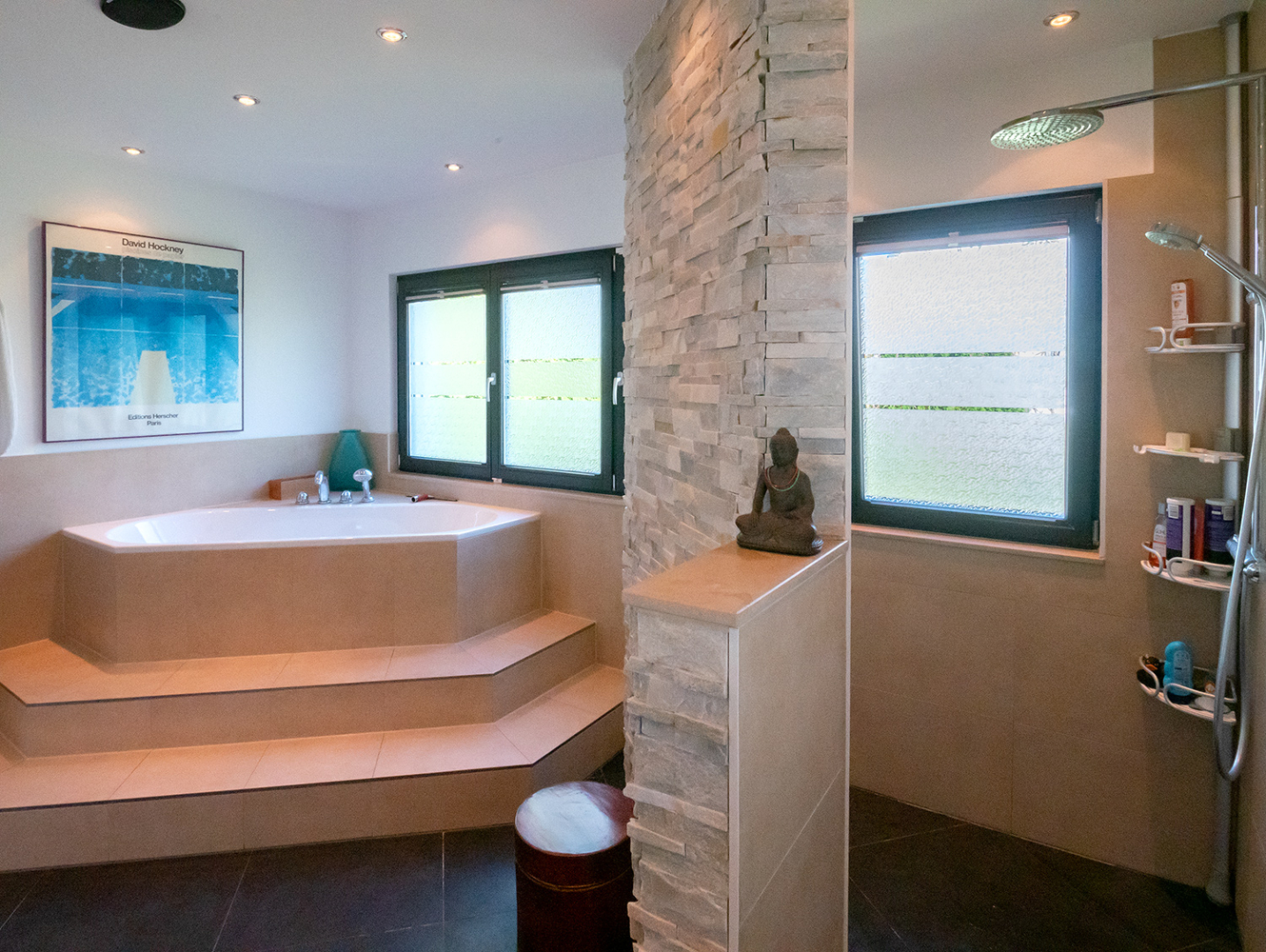 - Hauptbad mit Eckwanne, Dusche, Doppelwaschtisch und WC