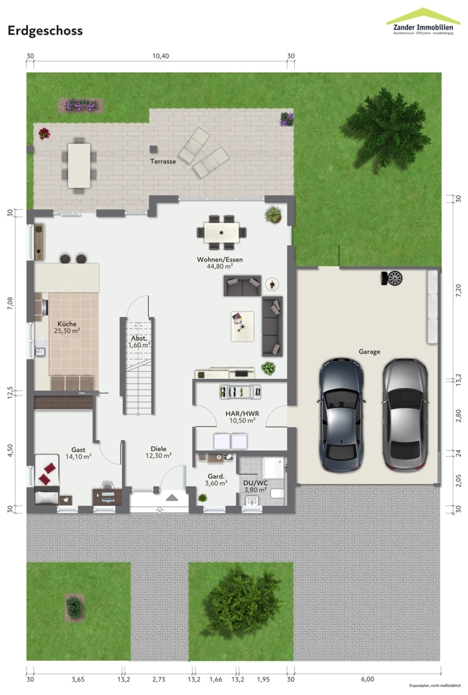 - Doppelgarage mit direktem Zugang in das Haus