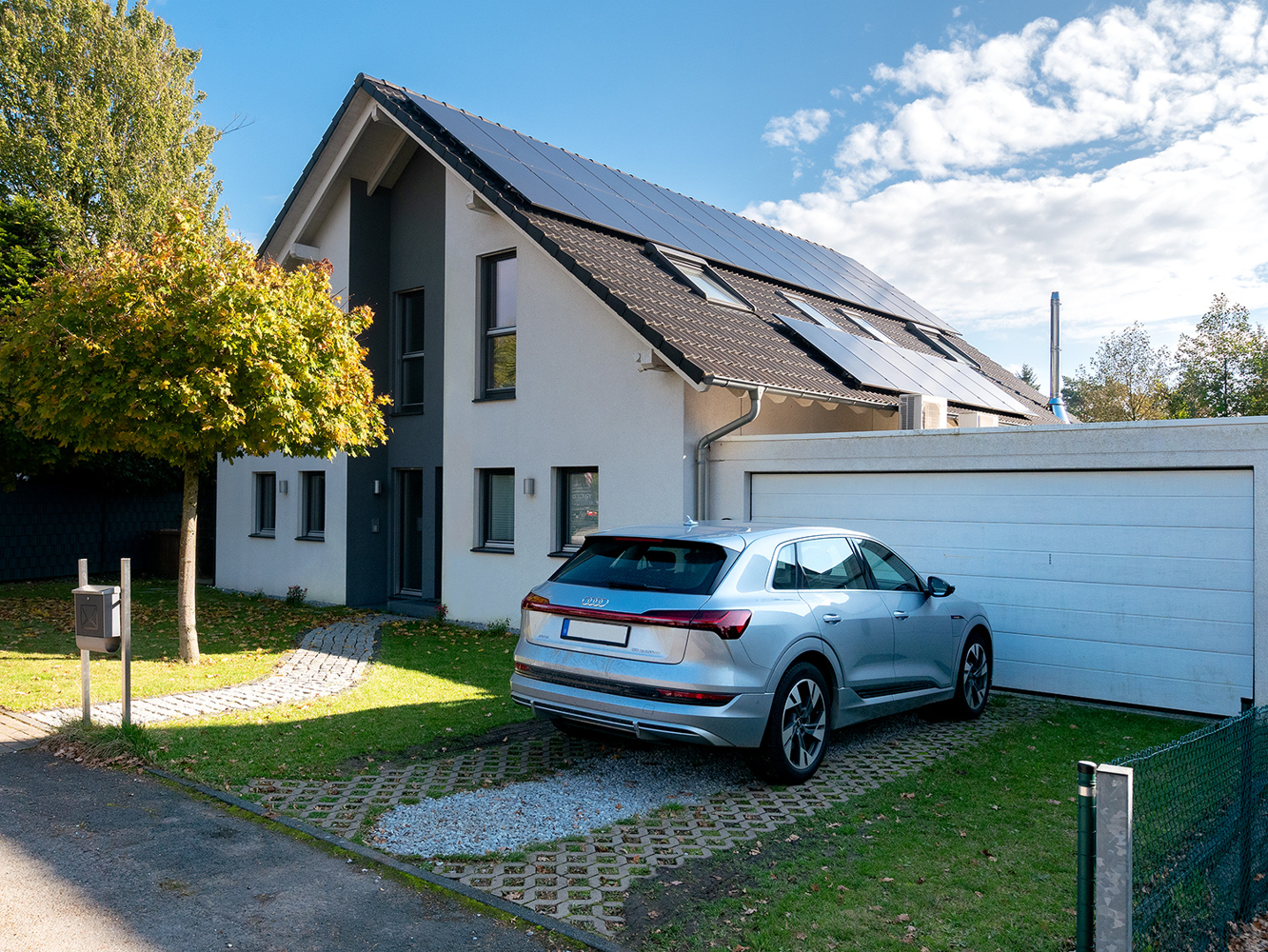 Im Jahre 2010 wurde das Haus vom Architekten nach den Wünschen des Bauherrn frei geplant. Das Hauskonzept überzeugt mit fortschrittlicher Technik und einer zukunftsfähigen Heizung, einer Luft-Wasser-Wärmepumpe. Unterstützt wird diese mit der PV Anlage auf dem Dach und erreicht so den Spitzenwert der Energieeffizienz von A+.