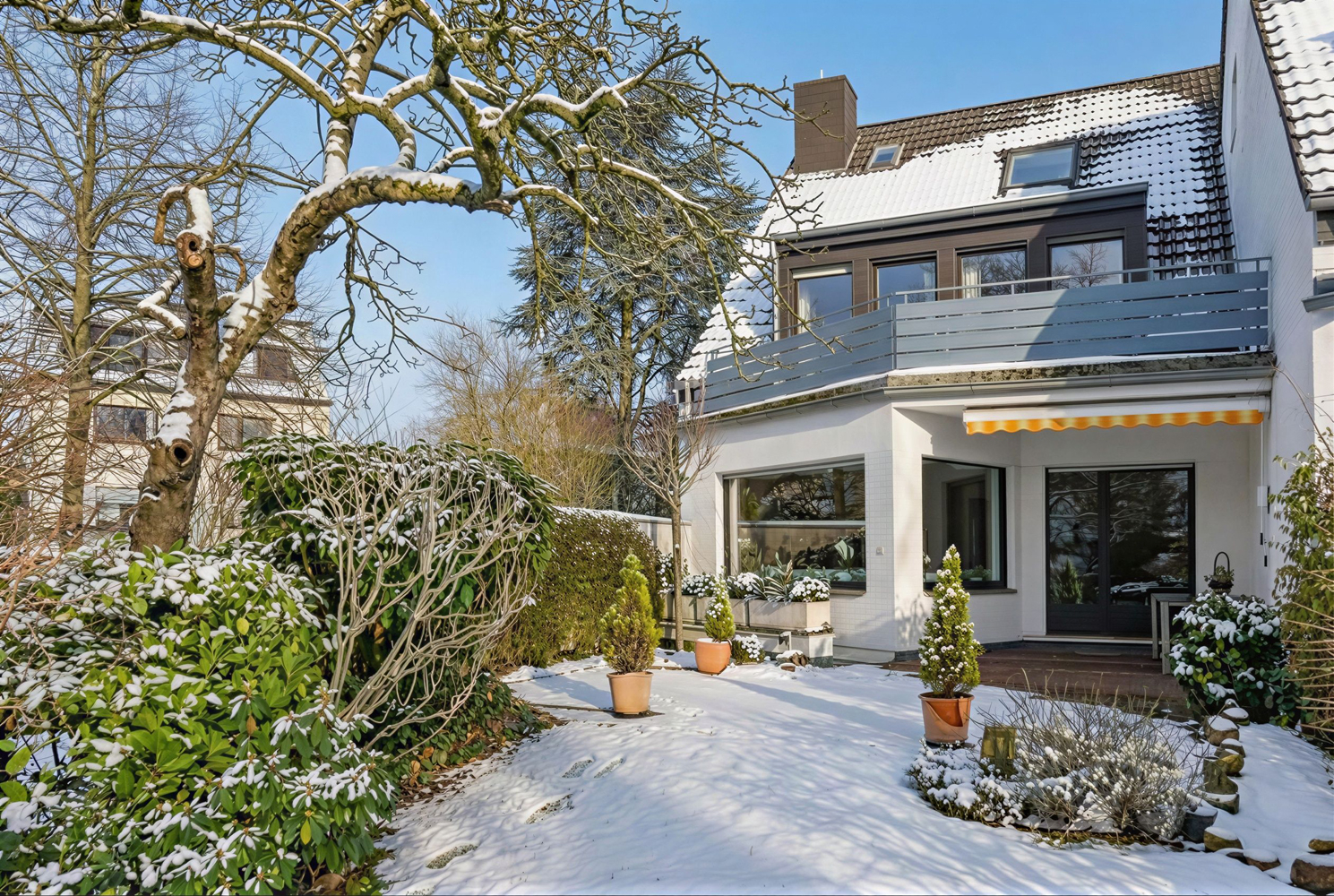 Herzlich willkommen in einem gepflegten Reiheneckhaus in sehr ruhiger Wohnlage von Düsseldorf-Angermund, das sich durch einen außergewöhnlich großen Garten mit Südwestausrichtung auszeichnet. Dank der optimalen Sonnenlage genießen Sie hier ganztägig Sonne, während die überdachte Terrasse mit zusätzlicher Markise auch an Regentagen einen geschützten Ort zum Verweilen bietet. Ergänzt wird das Außenangebot durch einen großzügigen Balkon im Obergeschoss sowie eine zum Haus gehörende Garage und einen zusätzlichen freien Stellplatz.