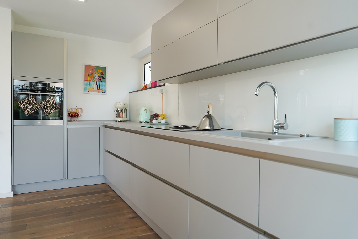 - hochwertige Einbauküche aus dem Jahr 2018 von der Firma Schüller (Steingrau matt)