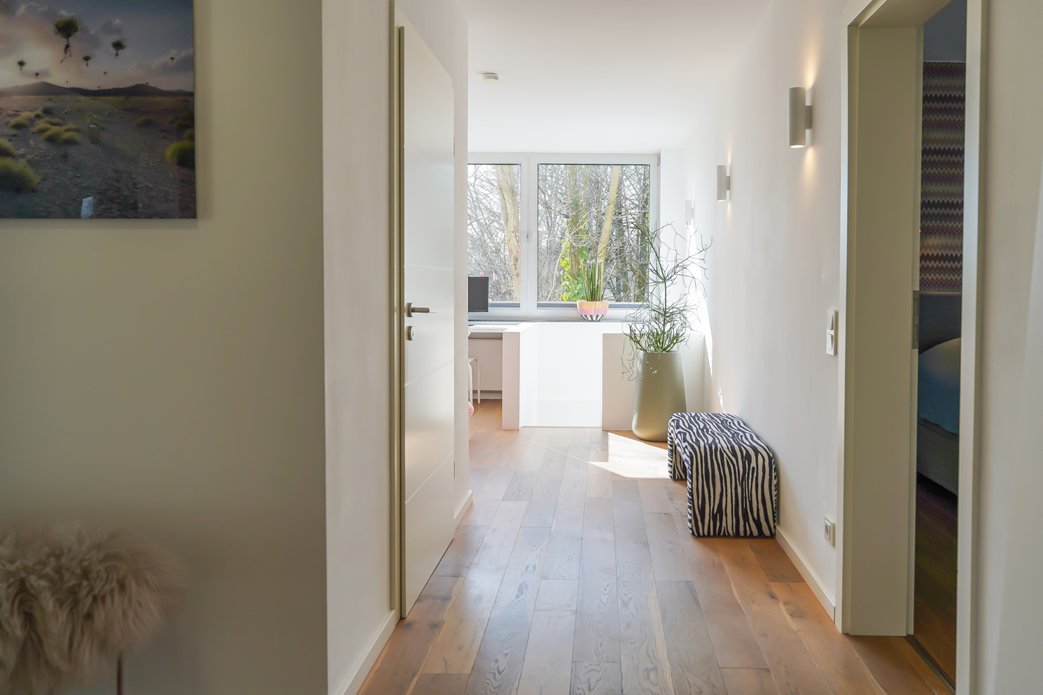 - glatt verspachtelte Wände und Eichenparkett im Erdgeschoss